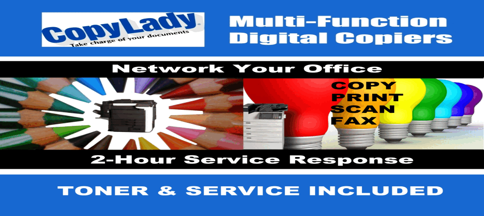 CopyLady: Proudly serving Fort Myers, Cape Coral, Fort Myers Beach, North Fort Myers,Lehigh Acres and SouthWest Florida since 2002!Did your copier finally tap out? Want something better? Call CopyLady today!At CopyLady, We carry Multifunction Printers from major brands such as Epson, Kyocera, and KIP.Got your own machine, but it needs some help? Call us! We service ALL the major brands.We fix Anything, and I mean ANYTHING! Laser? YES!, Inkjet? YES!, Dot Matrix? YES!, Thermal? YES!, The breakroom microwave? Maybe!Need a toner, ink or other component? Can't find it anywhere else? Call us, We can help you!Nobody can beat CopyLady's super fast response times, Not even Sonic the Hedgehog!When you have the CopyLady 2-HOUR Response Guarantee on your side, you never have to wait for service!With CopyLady's 2-Hour service guarantee, You can sit back, relax and know that we got your back. Our highly trained technicians will get you back up and running in no time. Our response to your call is BLAZING FAST! (Sorry for the skid mark in your parking lot!)You can also get quick assistance from our help desk! Do you have a question about something on your copier or printer?Need some assistance with a feature? Just give CopyLady a call, and our highly knowledgeable help desk technicians can assist you within minutes!We have the toners and inks you need for your machine, and we will give them to you!Your CopyLady Service agreement comes with the toners your machine needs, at no extra cost to you! Not only do we supply you with toners, but we also keep an eye on the levels with our Toner Replenishment System! (TRS)Gone are the days of having to order a toner. We handle all of that for you! We carry a full selection of toners and inks in our Fort Myerswarehouse, so you NEVER have to wait for it to come from some far off state! Did we mention that we bring the toners to YOU? Well, we do!We make sure you have your toner before you realize you even need it! We're THAT awesome! If you're going to go all in on a BIG idea, you'll need a BIG PRINTER to go with it!And when we say BIG, we mean BIG! Go BIG with a high quality plotter from CopyLady! Bring those BIG ideas to life!With sizes up to 44 inches, Black & White so sharp, you can feel it, and colors so vibrant, you'd think it was real life! There's no better time than NOW to kick up YOUR productivity a notch! Call us at 239-939-5383 or email info@copylady.comThe best copiers in the industry, with the best company in the industry, and the best response times in the industry?What's not to love? Call or Click today!Call CopyLady Today at 239-939-5383Serving Fort Myers, Cape Coral, Fort Myers Beach, North Fort Myers, Lehigh Acres and all of Southwest Florida.